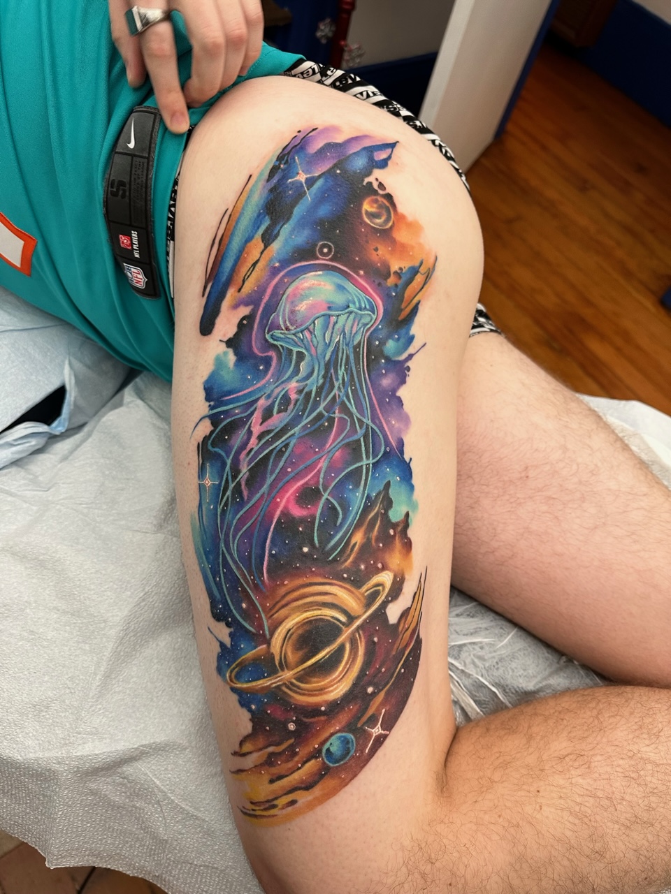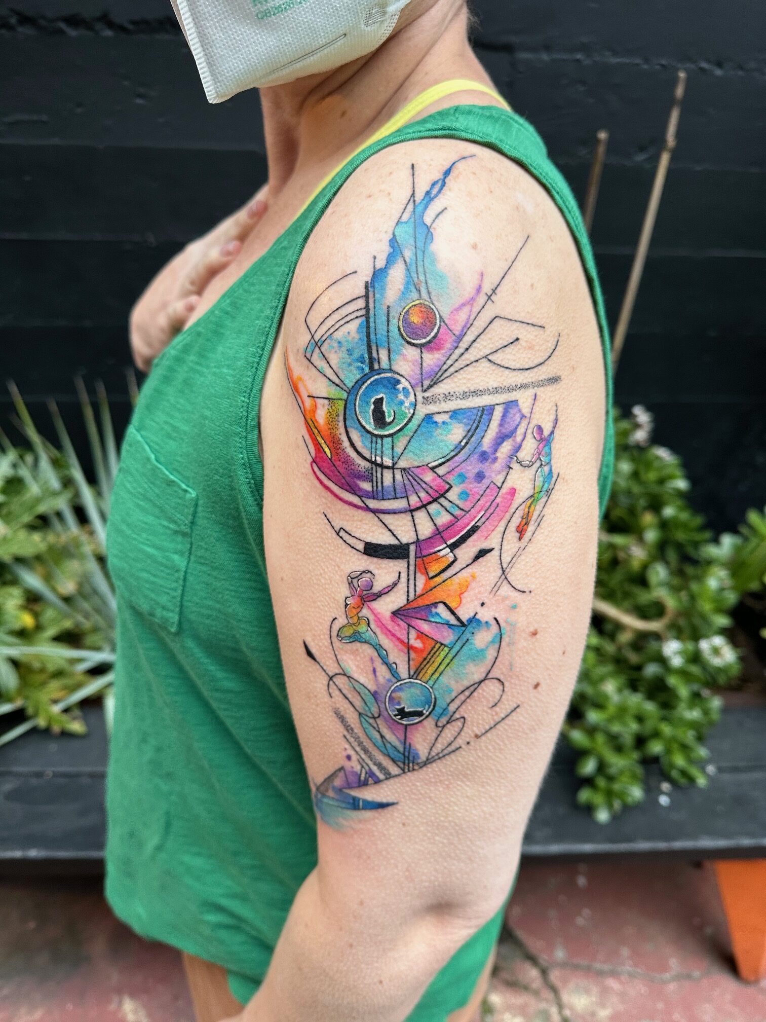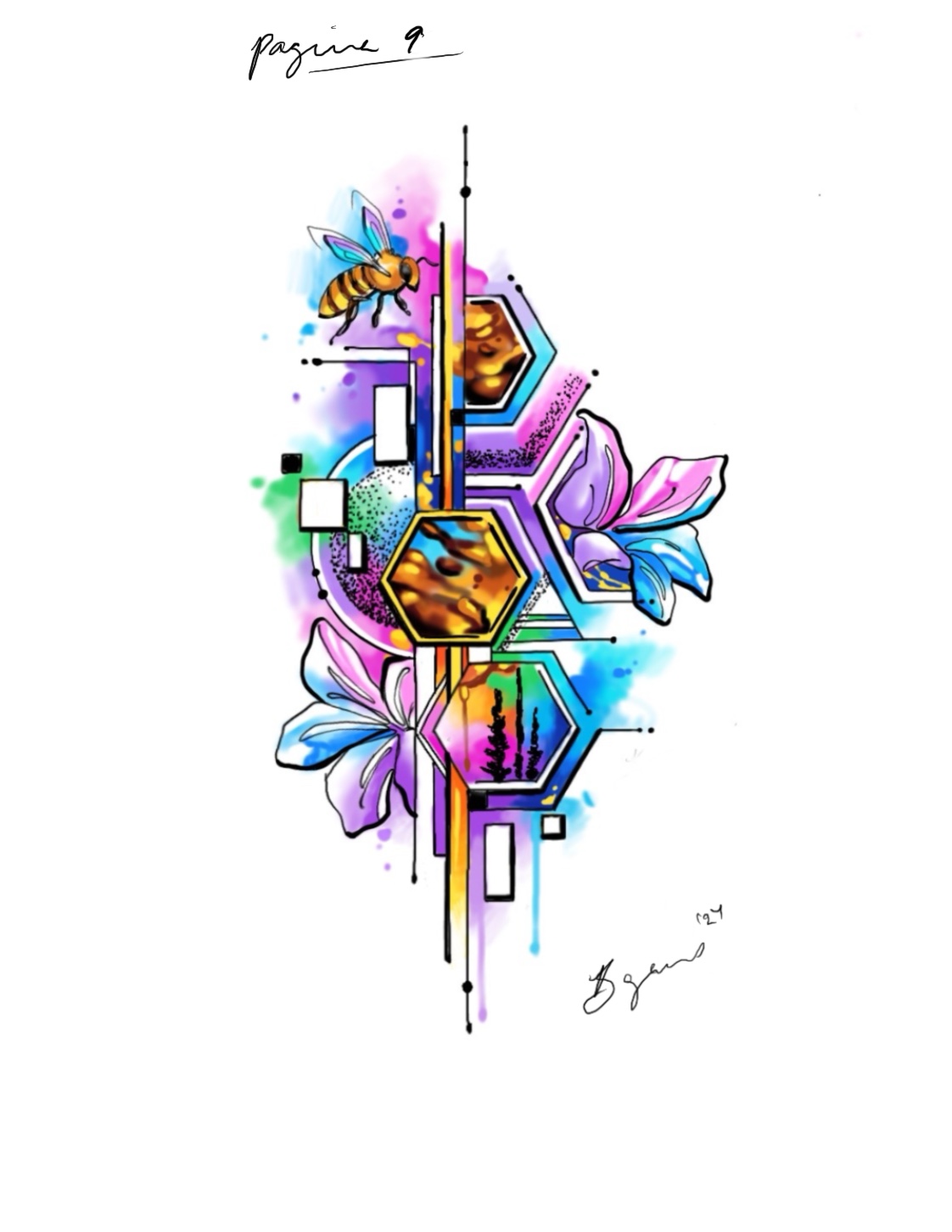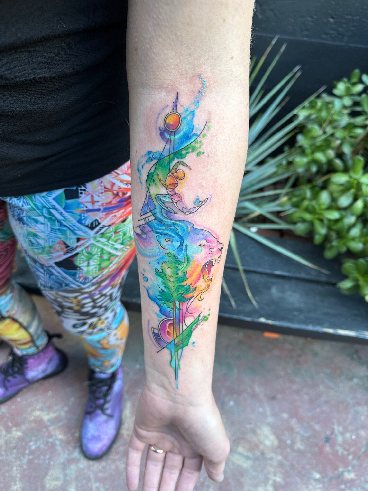With 14 years of experience, Brittany currently resides in Barcelona, working at The Cube Tattoo. Her work is characterized by the use of vibrant colors and abstract lines that invite the viewer to immerse themselves in each design. The combination of movement, emotions and the variable thickness of the lines results in unique pieces that tell their own stories.